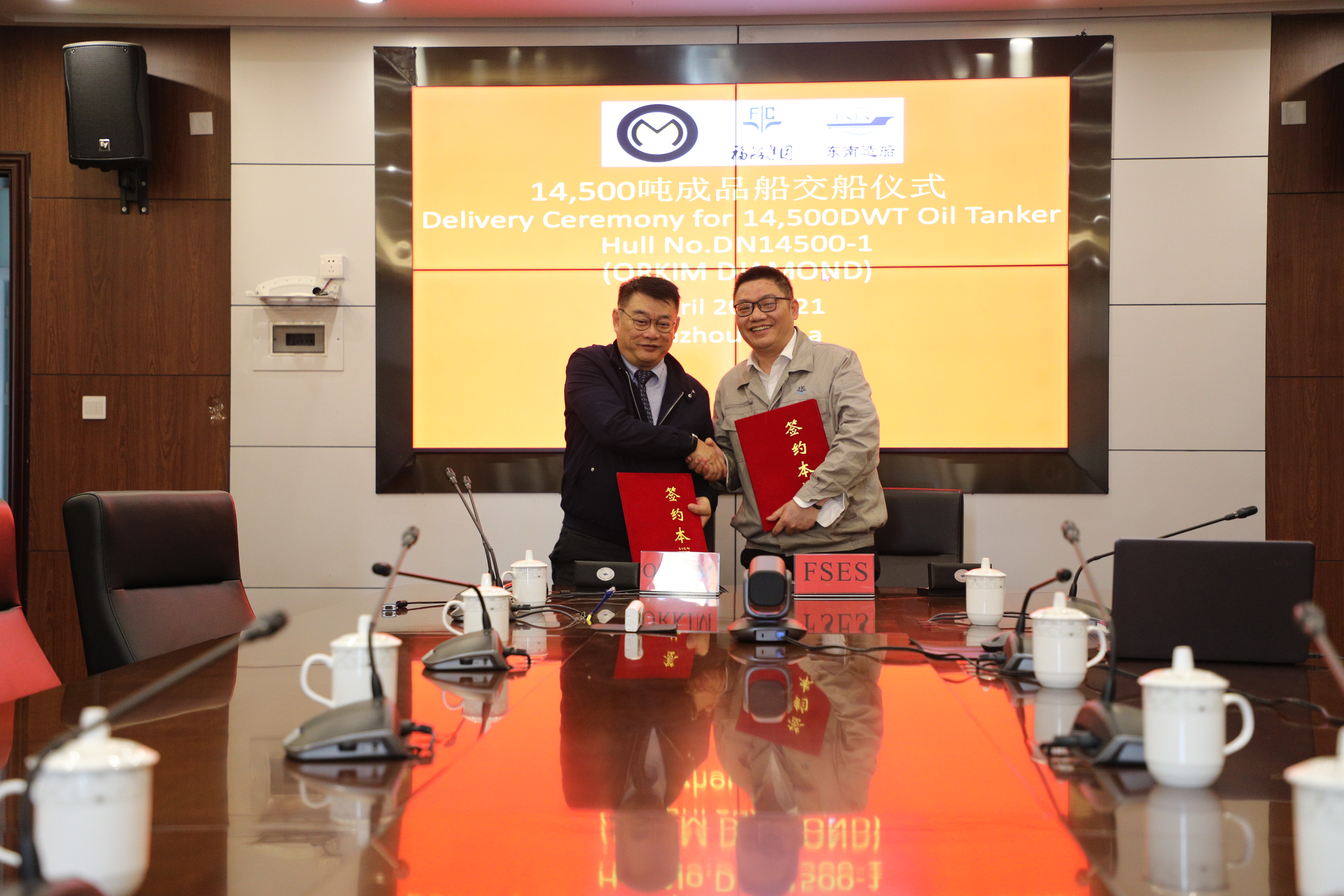 4月20日上午,東南造船為馬來西亞ORKIM MARINE SDN BHD公司承建的14500噸成品油船1號船順利交付。