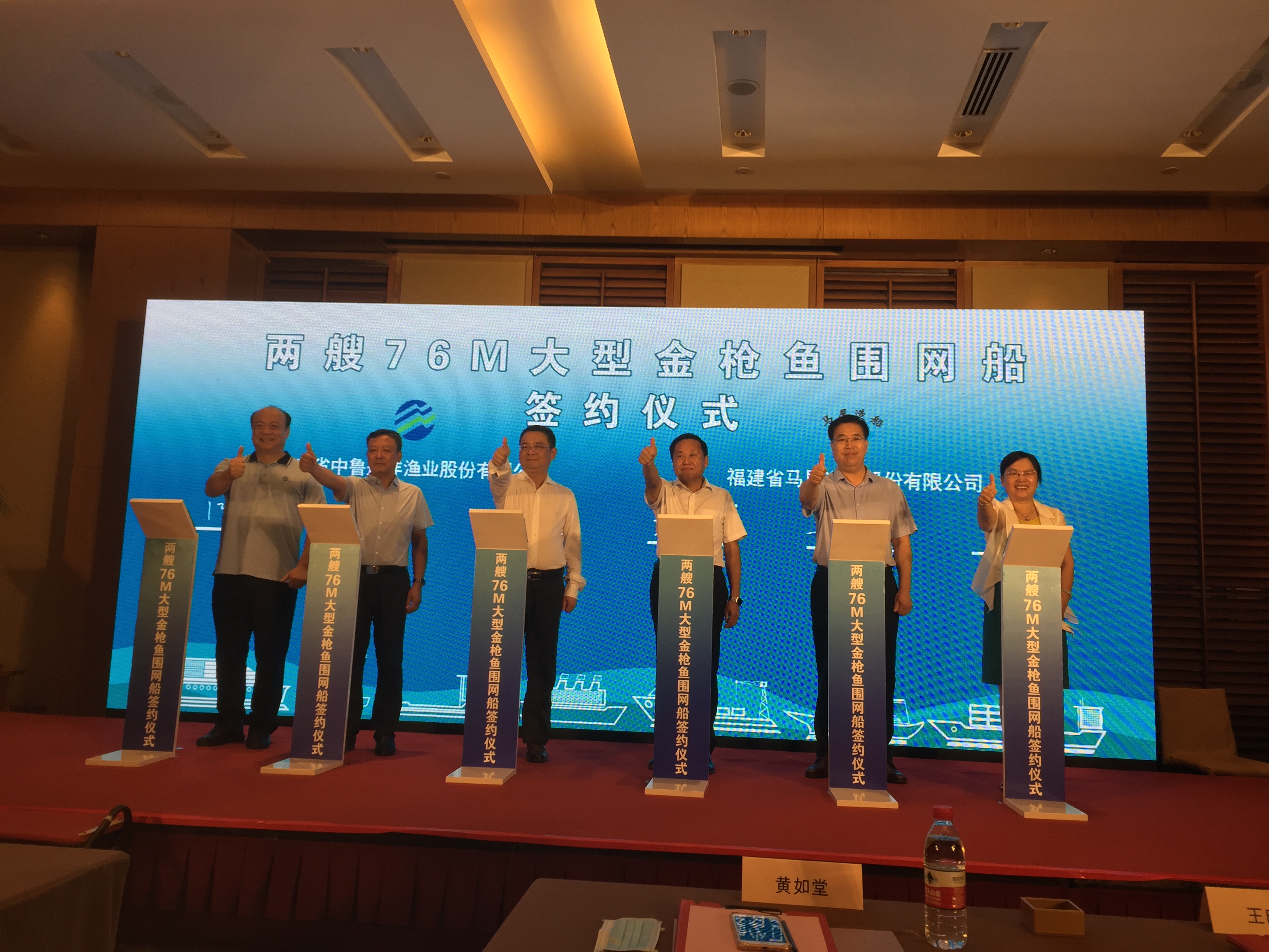 8月11日,馬尾造船與山東省中魯遠(yuǎn)洋漁業(yè)股份有限公司在青島簽訂兩艘76M大型金槍魚圍網(wǎng)船合同。青島市海洋發(fā)展局副局長王曉訓(xùn),山東省中魯遠(yuǎn)洋漁業(yè)股份有限公司董事長盧連興、總經(jīng)理王歡,福建船政黨委書記、董事長黃如堂,副總經(jīng)理張金香出席簽約儀式。