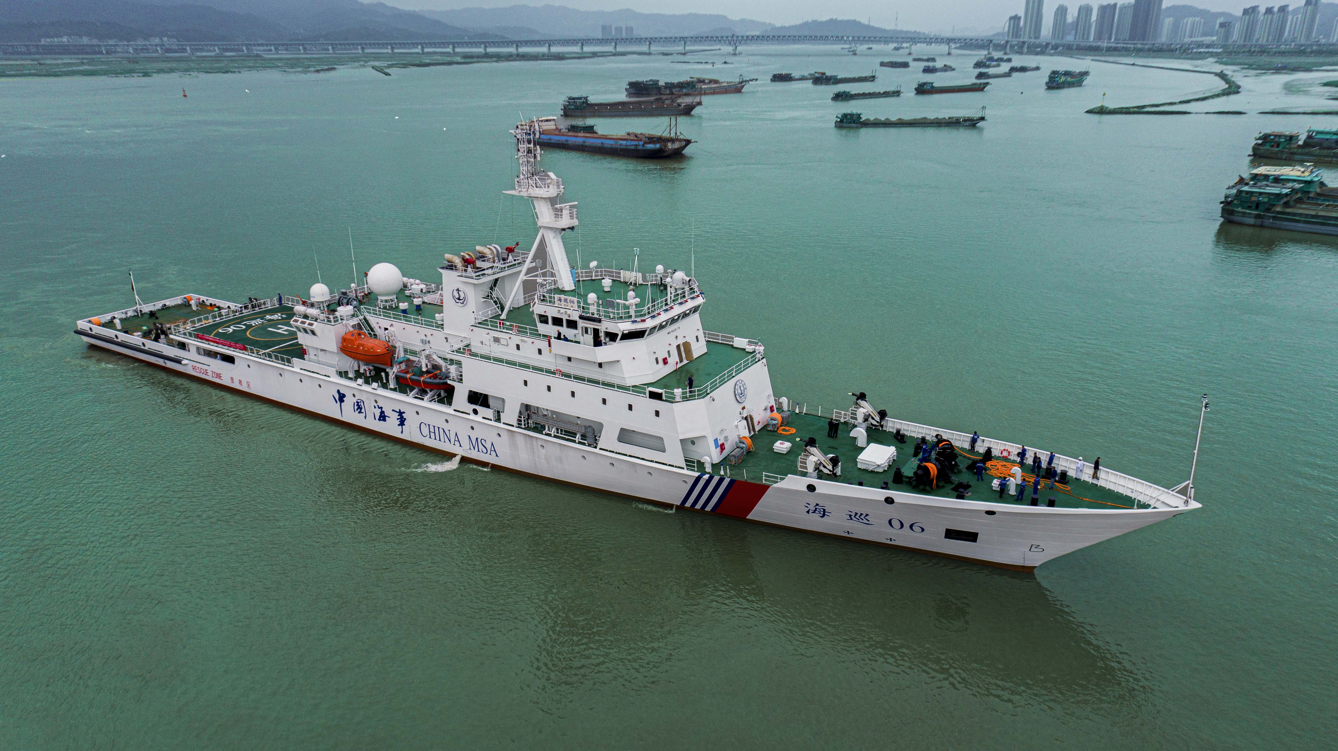 該船總長128.6米,型寬16米 ,型深7.9米,設(shè)計(jì)排水量5560噸,具備無限航區(qū)航行能力,續(xù)航里程1萬海里,在沒有外界補(bǔ)給的情況下,能在海上巡航執(zhí)法60天。該輪列編后,將成為駐守臺灣海峽的最大海事巡航救助船。